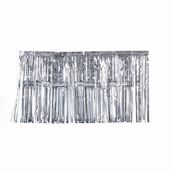This metallic silver tinsel foil fringe is a great way great to add more glitz & glamour to your party area!