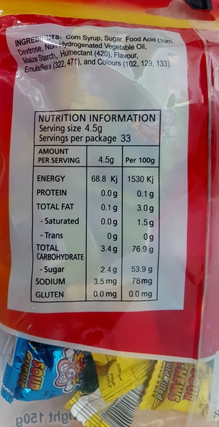 PLEASE NOTE: Number of lollies in pack may vary from pack to pack and between batches received from importer, as item is packed by importer based on weight.