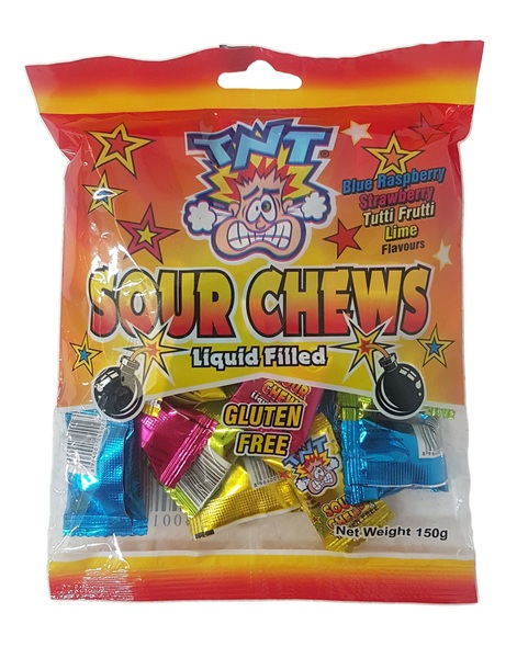These delicious liquid filled sour chews are perfect for any party! With 150g in each pack, they're sure to be a big hit at the party! Individually wrapped. Approx. 30 individual lollies in a pack. Flavours include: blue raspberry, tutti frutti, lime and strawberry.