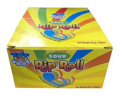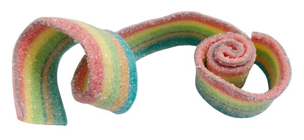 Each box contains 40 individually wrapped fruit flavour rainbow straps - perfect for party favours, game prizes or fun treats!