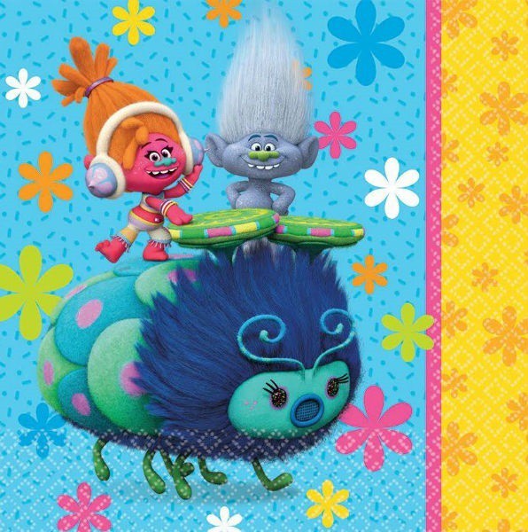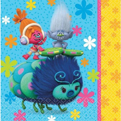 Pack of 16 Trolls 2 ply lunch napkins, each measuring approx. 16cm x 16cm (32.7cm x 32.7cm when folded out.)
