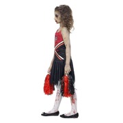 The dress is made from black stretch fabric and features red & white front cross-over stripes, fake blood stains, DED lettering and a tattered edges.