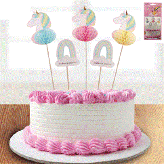 NB: Unicorn picks have a honeycomb decoration on them and the rainbow picks have 'I believe in unicorns' written on them.