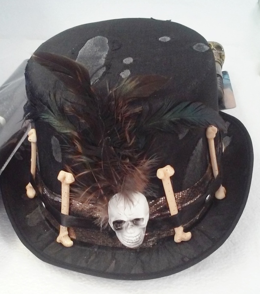 1 x tattered design top hat (designed to fit most adults; head cavity measures approx. 56cm in circumference)