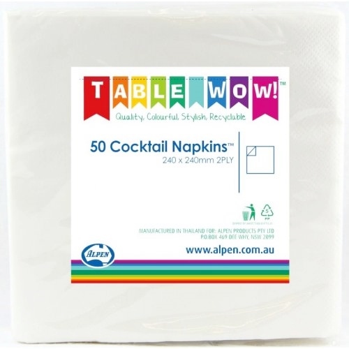 Pack of 50 white cocktail sized 2 ply napkins, perfect for any occasion! Napkins measure approx. 12cm x 12cm (24cm x 24cm when folded out.)