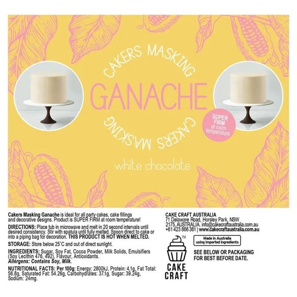 Simply soften the ganache by placing the tub into the microwave and melt in 20 second intervals until desired consistency is reached. Stir with a spatula until fully melted. Spoon directly onto your cake or into a piping bag for decorating. CAUTION - product is hot when melted.