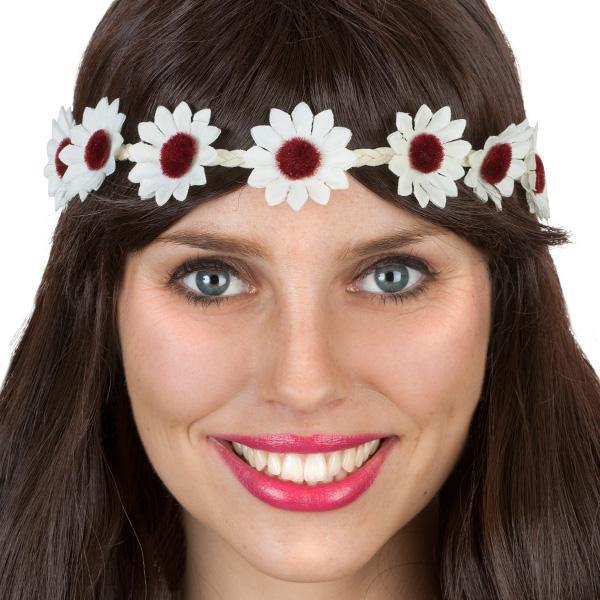 This white daisy chain headband is perfect for any costume party, especially a hippie / 1960's theme costume! With a stretchable elastic band to fit around most size adult heads, it's easily coordinated with the rest of our hippie costume accessories and sure to be a big hit!