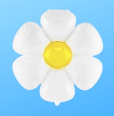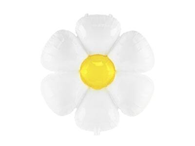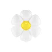 This shaped foil balloon features large white petals with a yellow centre and has a high gloss finish.