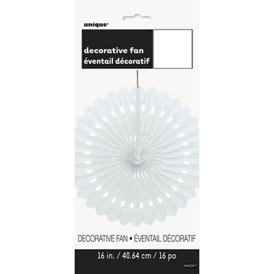 This white decorative fan suits so many themes! Measuring approximately 40.64cm in diameter when assembled, it's easily assembled and sure to be a big hit at your party!