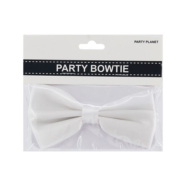 The tie is made from white satin fabric and has an adjustable clip closure, making it both lightweight for comfortable wear and durable for repeated use.