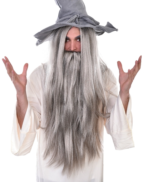 Wizard style long grey wig and beard, designed to fit most adults. Washing and styling instructions included on packaging.
