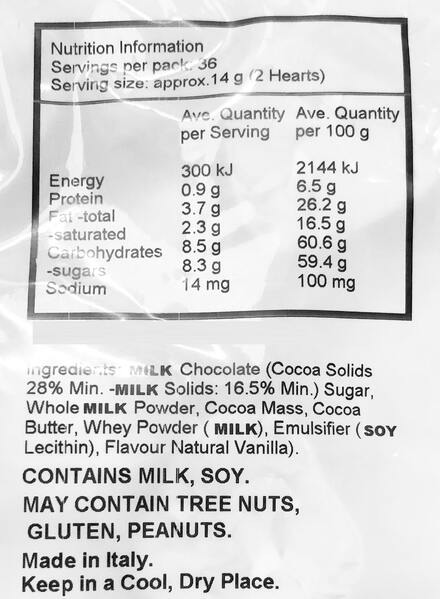 These choc hearts measure approx. 3cm x 3cm and you get approx. 70 per 500g bag.