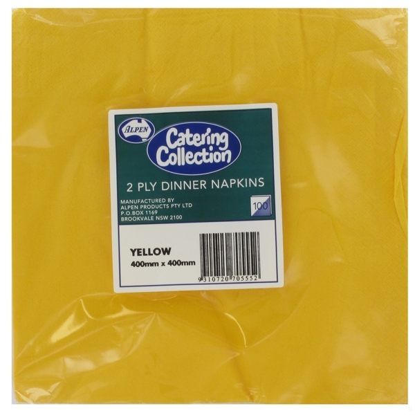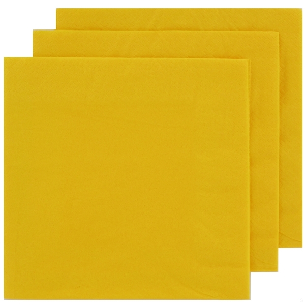 Pack 100 premium yellow 2 ply dinner party napkins (40x40cm) suitable for the largest meal. Colour coordinated to match plastic tableware.